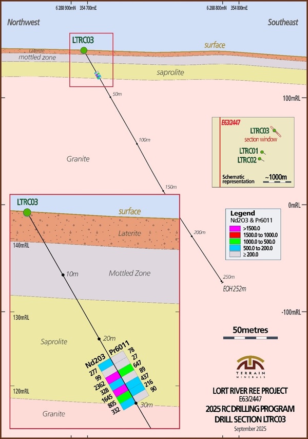 drill hole LTRC03 as reported by Terrain Minerals via the ASX Market
