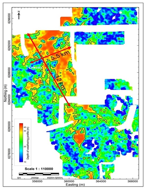 extent, thickness and depth of the conductive regolith horizons (see ASX: 28/10/2025).